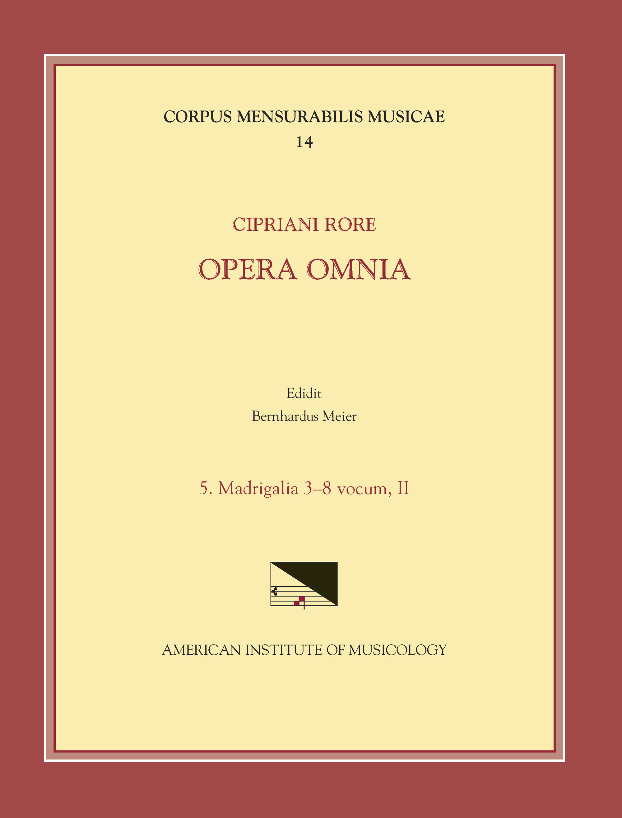 CIPRIANO DE RORE (1516–65), Opera Omnia, edited by Bernhard Meier.